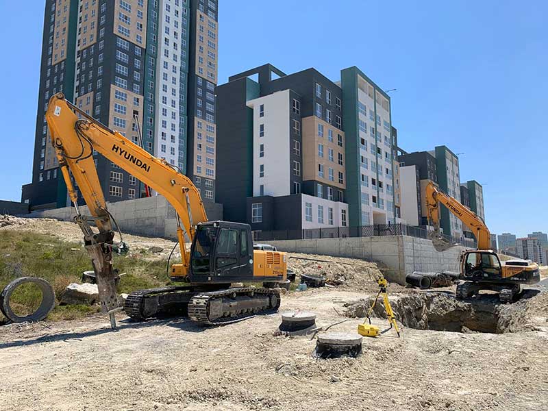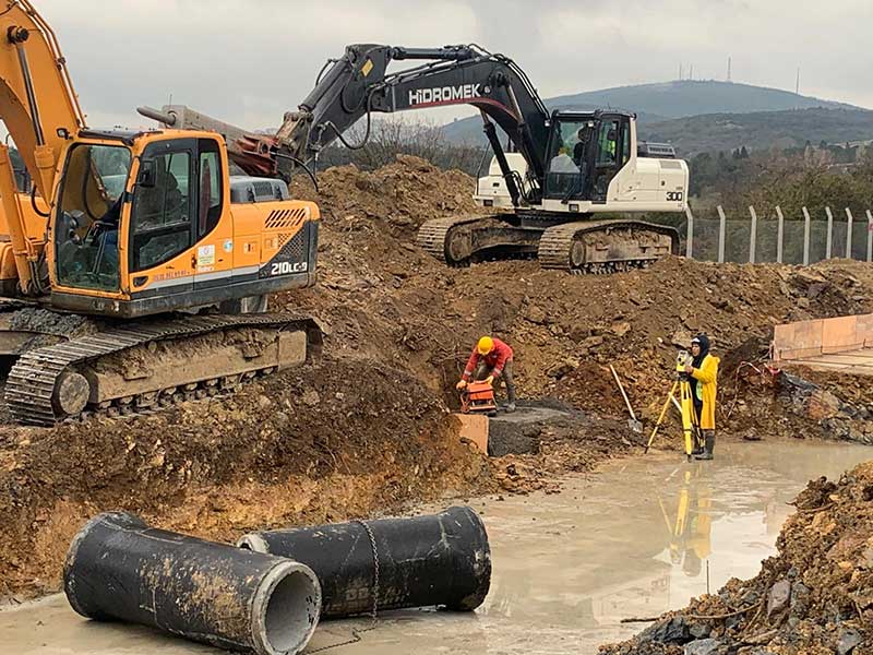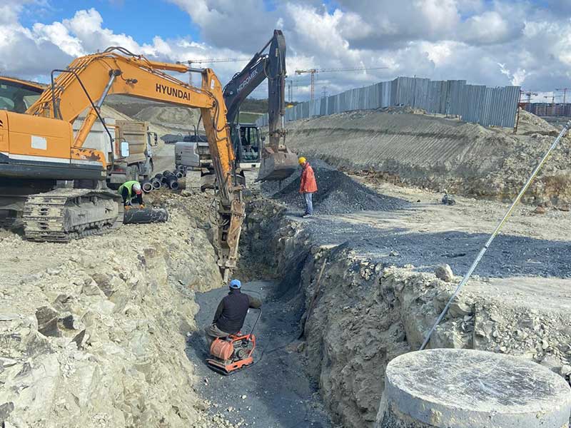 Since 2006, we have been at your service with our wide range of services including construction of rainwater, wastewater, drainage, and drinking water lines, installation of underground corrugated pipe systems for telephone and low-current lines, renovation and repair of bank buildings, landscaping, construction of curbs, sidewalks, and hard surface coverings, and a large fleet of construction machinery.